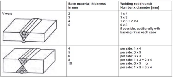 Số lượng đường cần hàn cho 1 mối màn sẽ tùy thuộc vào độ dày của tấm nhựa cần hàn cũng như đường kính của loại que hàn sử dụng: