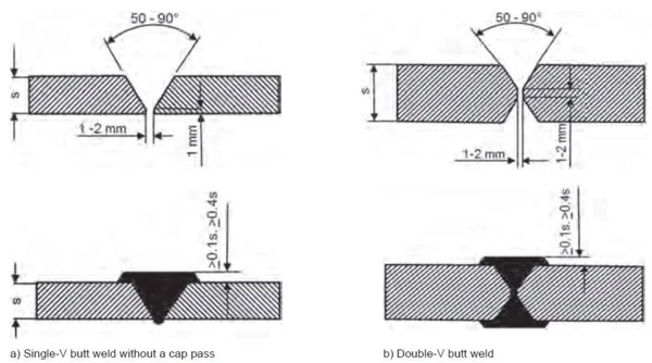 Hình ảnh 1 mối hàn chữ V (kiểu không có hàn lót phía lưng)