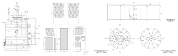 Cần có bản vẽ khai triển các tấm nhựa từ dạng phẳng thành các mảnh để có thể ghép với nhau và lót cho toàn bộ bề mặt bên trong bồn cũng như lót cho các chi tiết khác của bồn như các cửa, đầu nối (nozzle), các chi tiết gá đỡ…Bản vẽ này là cơ sở để có thể tính toán xem phải dùng số lượng tấm nhựa như thế nào, ngoài ra cũng để thể hiện rõ vị trí của các cửa, đầu nối…tránh cắt khoét nhầm cũng như tránh đặt chúng vào vị trí có nhiều đường giao cắt (là các đường ghép nối giữa các mảnh nhựa được khai triển).