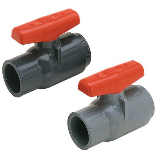 Economical, low profile quarter-turn shutoff valve is excellent for general purpose and many O.E.M applications. PVC and CPVC valves are available in IPS sizes 1/2" through 4" with socket, regular thread, SR threaded (Special Reinforced), flanged or spigot end connectors.
