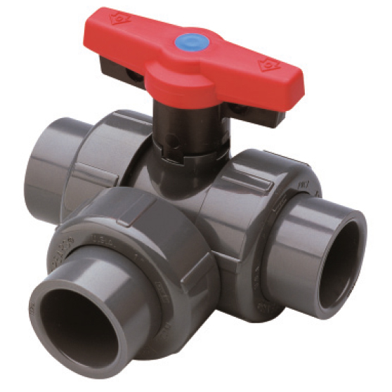 Spears® True Union 2000 Industrial Tee-Style Ball Valve design integrates valve and Tee-fitting for direct branch take-off laterals. The “Tee-Valve” provides a stronger, more compact connection by eliminating the need for a reducer, additional length of pipe, and one of the end connections on the ball valve. Close proximity of valve to mainline emulates a “zero deadleg” design to minimize any areas of fluid stagnation. Custom produced to specified Tee and Valve connection sizes. Also available in metric sizes.