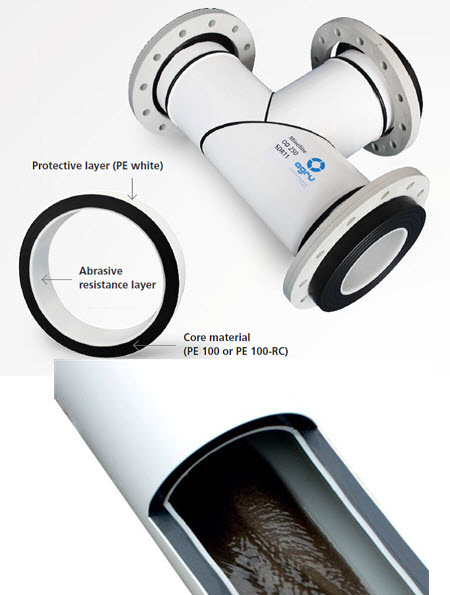 Để tăng khả năng chống mài mòn cho đường ống HDPE hoặc HDPE-RC trong các ứng dụng để vận chuyển dòng lỏng chứa chất rắn, mài mòn như đường ống dẫn bùn, AGRU phát triển hệ thống đường ống Mineline có khả năng chống mài mòn – chuyên dùng cho chuyển chở bùn, nước lẫn đất đá, dùng trong ứng dụng khai mỏ. Đặc điểm của đường ống Minelines là ống HDPE được lót thêm 01 lớp chống mài mòn bên trong ống, giúp tăng đối đa khả năng chống mài mòn khi vận chuyển bùn, nước lẫn quặng…. Bên ngoài ống được bọc thêm 01 lớp cách nhiệt để chống khả năng bị dãn nở nhiệt dưới tác dụng của mặt trời.