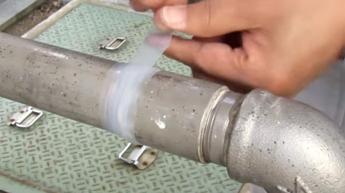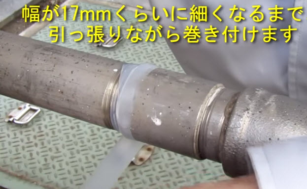 Quấn băng "Sabi Goyou" Kéo căng "Sabi Goyou" tại điểm giữa ống, đảm bảo băng lớp trên đè lên 2/3 lớp dưới (khoảng17mm.) để quấn quanh điểm cần bảo vệ. Quấn băng theo đường xoắn ốc, đè qua vùng bảo vệ khoảng một nửa. Để tăng hiệu quả chống nước, kéo căng qua đoạn cần bảo vệ khoảng 30mm ở cả hai đầu và kéo đầu cuối của băng quấn gần tâm của chỗ cần bảo vệ. Quấn khoảng 2-3 lớp quanh điểm bảo vệ |